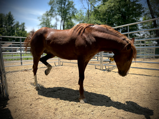 Last weekend, we picked up TWO new residents at the Annville, PA adoption and sale event. The sorrel mare looks like she has already found a home, but the dashing red roan will be available for sale/adoption!